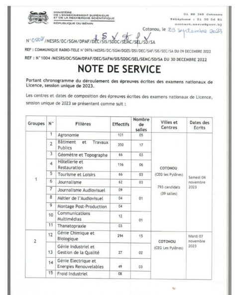 Epreuves écrites des examens nationaux de Licence session unique 2023 : voici les centres et dates de composition