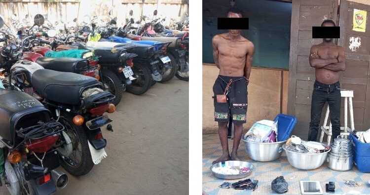Deux individus ont été interpellés au cours de l’opération. Au total 75 boulettes de chanvre indien et 19 motocyclettes ont été saisis. La police a également réussi à mettre la main sur le chef du réseau de distribution du chanvre indien grâce à ses investigations. Plusieurs objets d’origine douteuse à savoir une machine à sous, un ordinateur portatifs, des ustensiles de cuisine et un passeport béninois ont été retrouvés à son niveau et saisis.