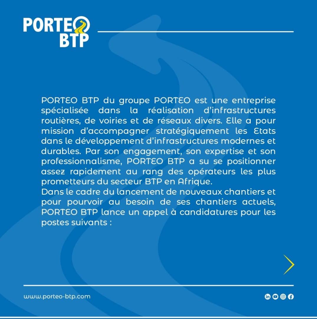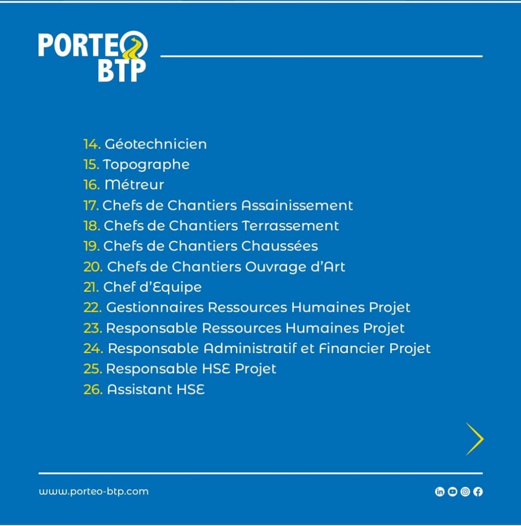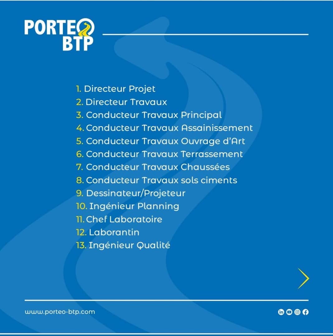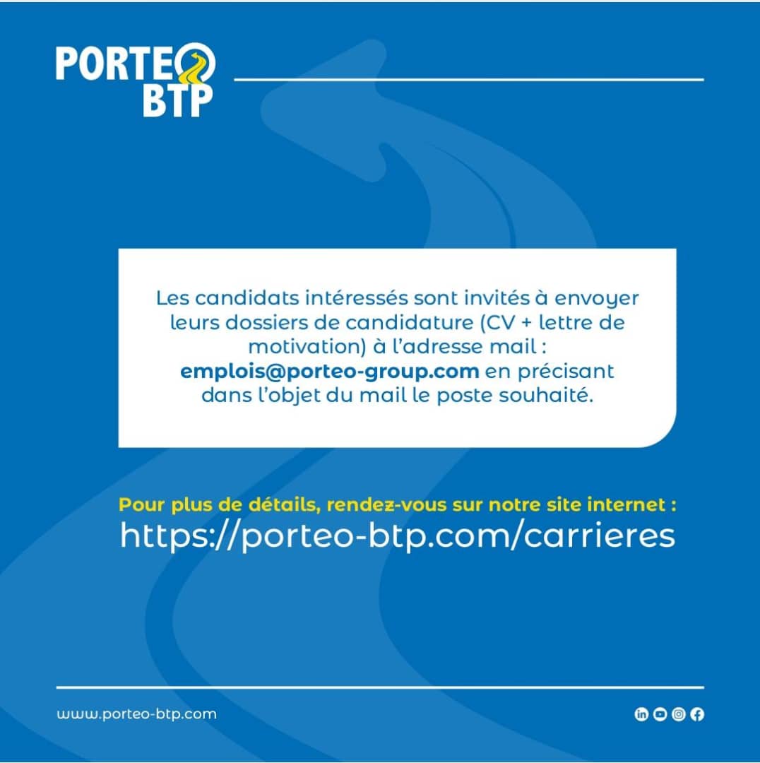 Recrutement : Porteo BTP recrute pour plusieurs postes Communiqué By abiolos On Mar 20, 2024 0 2 257 Share Porteo BTP recrute pour plusieurs postes. Détails 👇🏾 Porteo BTPRecrutement 0 2 257 Share
