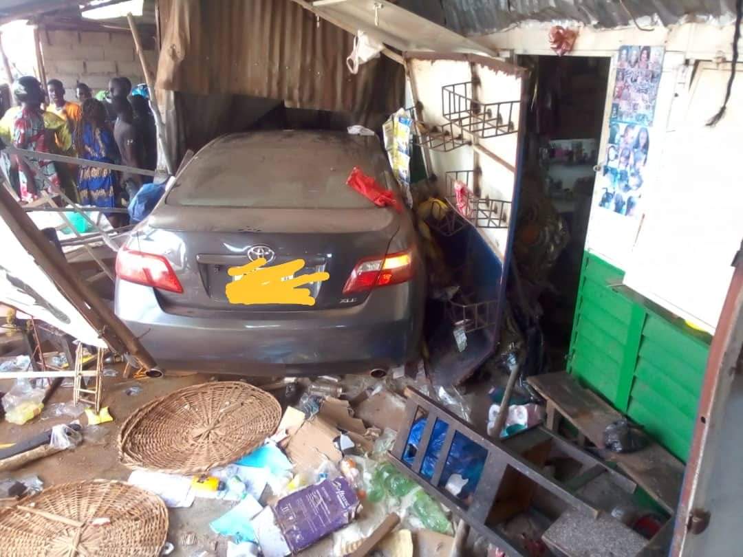 Grave accident de circulation ce samedi à Abomey-Calavi : un véhicule perd le contrôle, ramasse tout sur son chemin et finit sa course dans une boutique