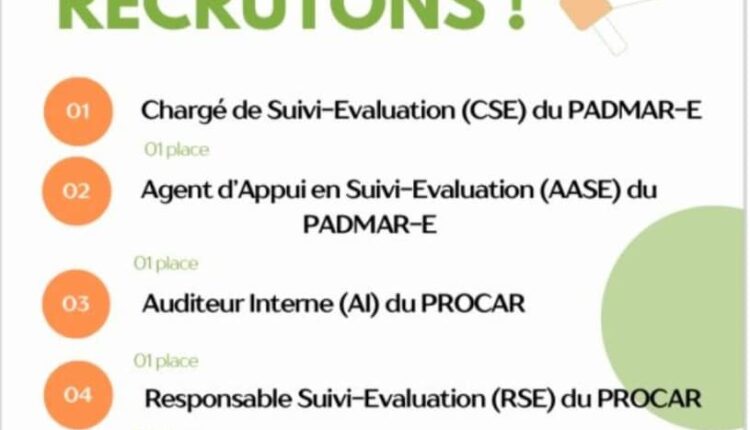 Appel à candidature : le ProCar FIDA recrute à plusieurs postes