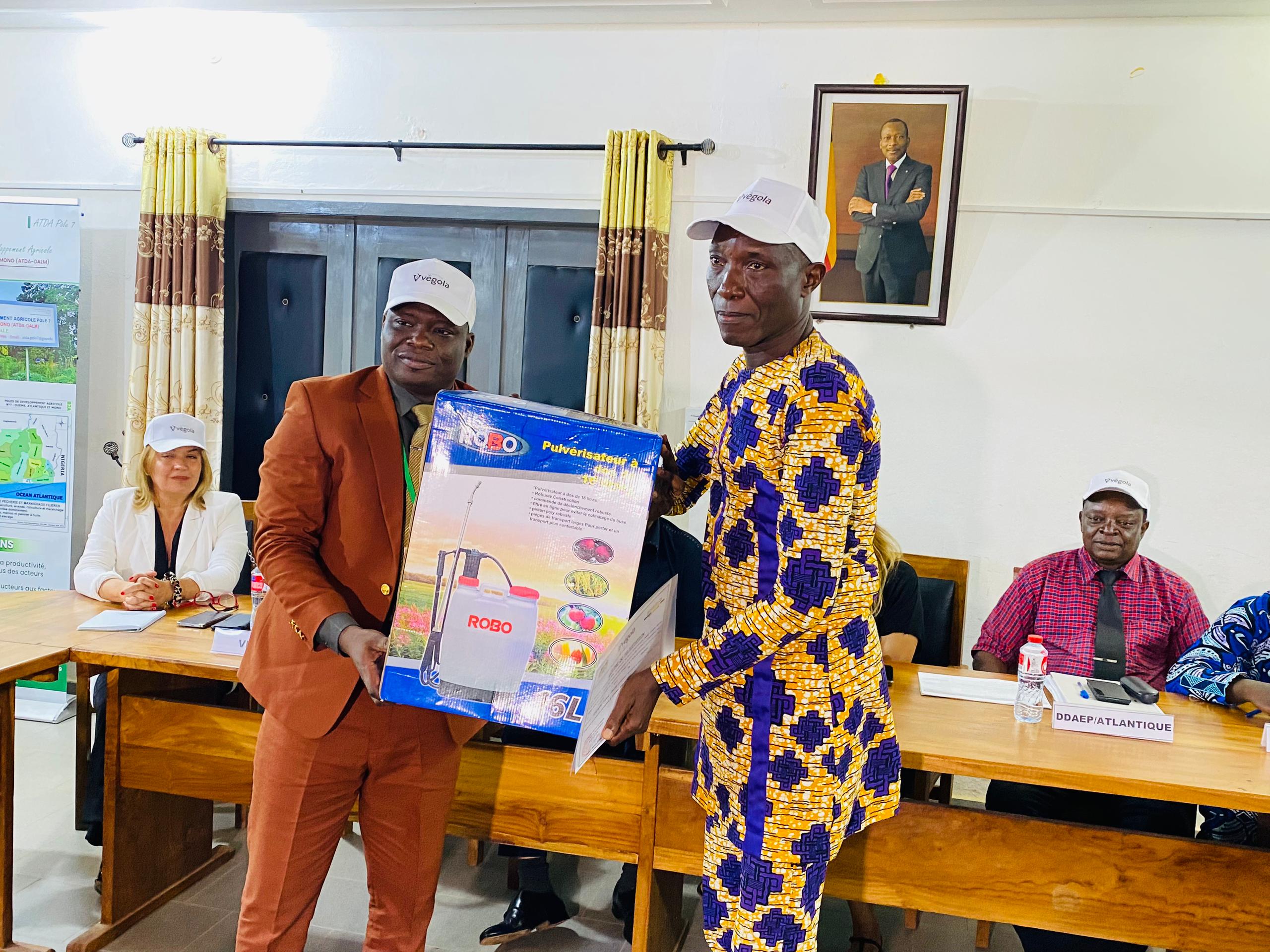 C’est dans une ambiance festive et conviviale que Vegola Bénin a organisé le mardi 16 juillet 2024, la première édition de la cérémonie de récompense de ses meilleurs producteurs au titre de la première saison de l’année. L’événement a eu lieu dans les locaux de l’Agence Territoriale pour le Développement Agricole (ATDA) pôle 7 à Abomey-Calavi en présence de la Manager International du Projet VEGOLA près de la firme Rafael Gonzalez Business Group de l’Espagne, Madame Fatima PEREZ, de Madame Rebecca PEDRAJA Directrice Commerciale et Marketing de VEGOLA Iberica de l’Espagne, du Directeur Général de l’Agence Territoriale du Développement Agricole (ATDA) pôle 7, SAGBO Agossou Prospère, du Directeur Départemental de l’Agriculture, de l’Elevage et de la Pêche de l’Atlantique (DDAEP/ATL), Hubert Dognon Tchoukpéni, du Coordonnateur de Vegola Bénin, Bello HONVOH, du Représentant de la Fédération Nationale des Organisations des Maraichers du Bénin (FéNOMa BENIN), Miley GBADIGUI, des chefs cellules communales de l’ATDA, et des heureux récipiendaires.