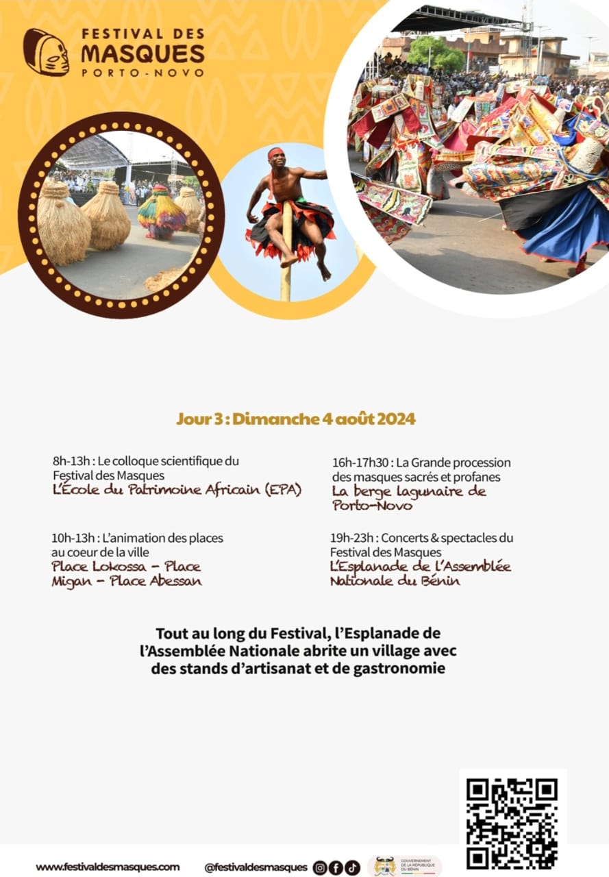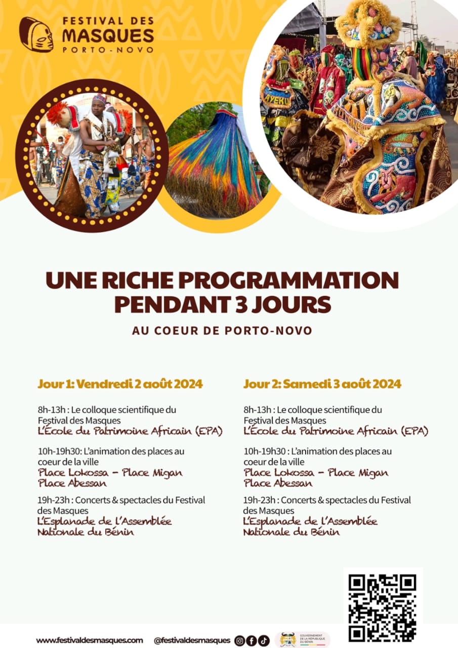 Après Vodun days, le Bénin crée le Festival des masques à Porto-Novo. À partir du 02 Août 2024, la capitale du Bénin sera le théâtre de 03 jours d’animation et d’activité culturelles inédites. Le pays sera encore révélé à travers la culture et les arts