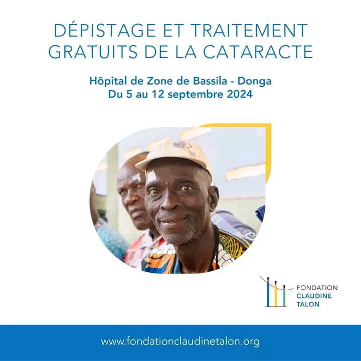 L’hôpital de Zone de Bassila abrite du 05 au 12 septembre une campagne de dépistage et de traitement des personnes atteintes de cataracte grâce à une initiative de la Fondation Claudine Talon. Les dépistages gratuits se dérouleront les 5, 6 et 7 septembre, tandis que les opérations seront réalisées sans frais du 9 au 12 septembre.
