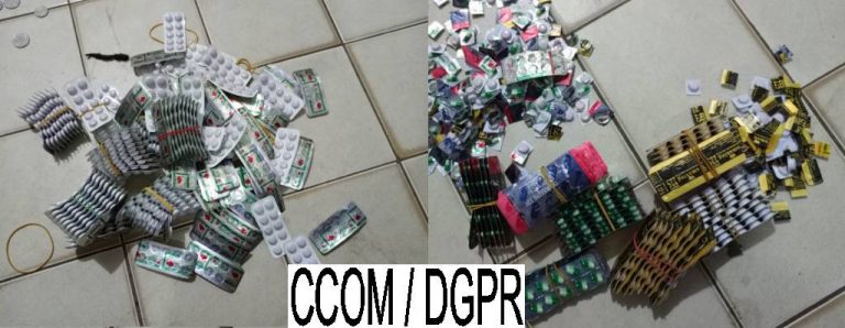 En effet, grâce à la fiabilité et au dynamisme de son réseau renseignements, cette cafétéria a été identifiée comme étant un lieu de vente de faux médicaments où tous les jeunes du quartier venaient s’approvisionner en TRAMADOL et d’autres substances nuisibles à la santé. En vue de mettre un coup d’arrêt décisif à cette pratique malsaine, germe de projection d’actes criminels, une équipe du commissariat du 8e arrondissement de la ville de Cotonou a fait irruption sur les lieux. Le suspect a été appréhendé en flagrant délit avec un sac en bandoulière contenant une variété de produits contrefaits prohibés.