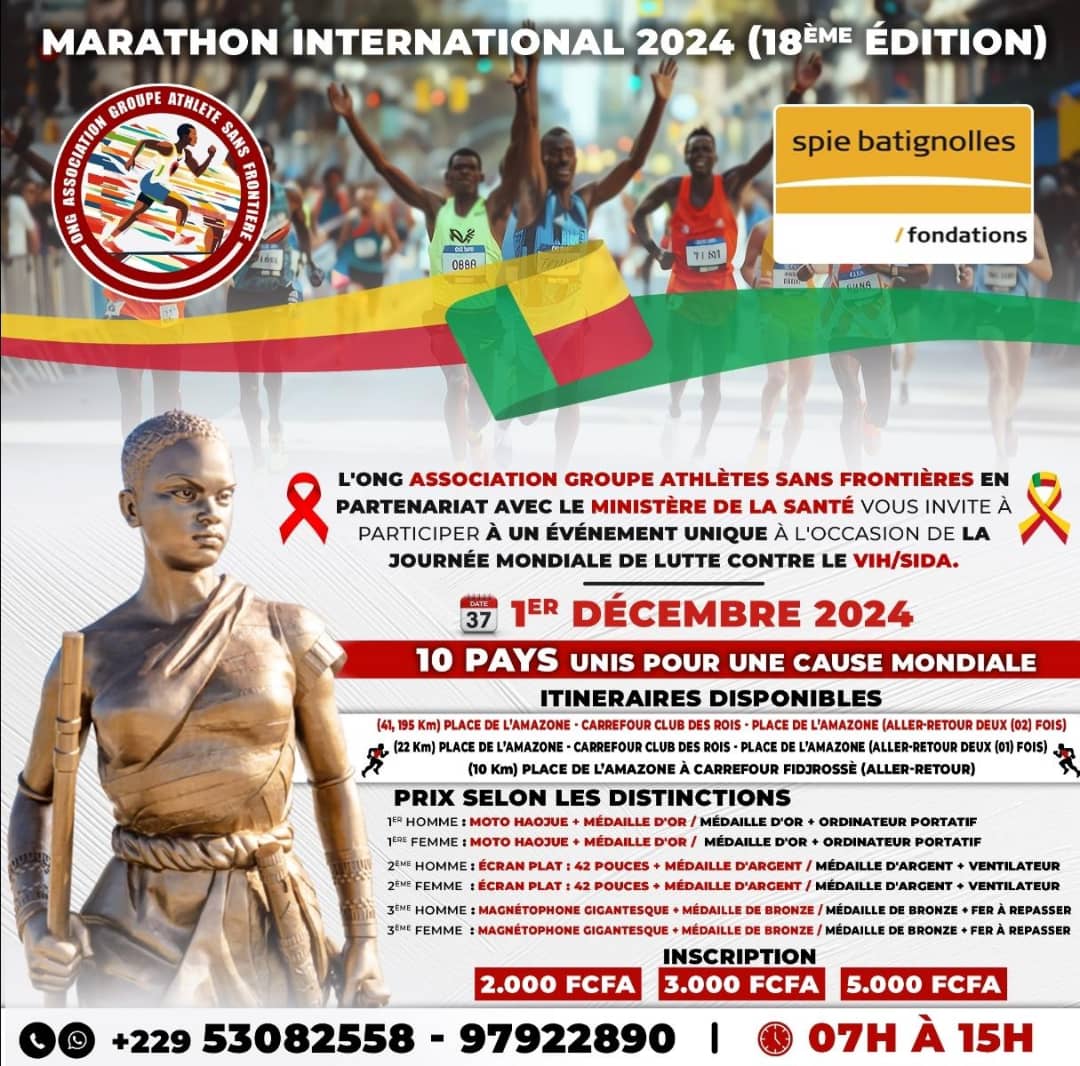 Le 1er décembre prochain, l’Esplanade de l’Amazone à Cotonou accueillera la 18ème édition du Marathon International pour la Lutte contre le VIH/SIDA. Organisé par l’ONG AGASF, cet événement allie sport, solidarité et sensibilisation, dans le cadre de la Journée Mondiale de Lutte contre le VIH/SIDA.