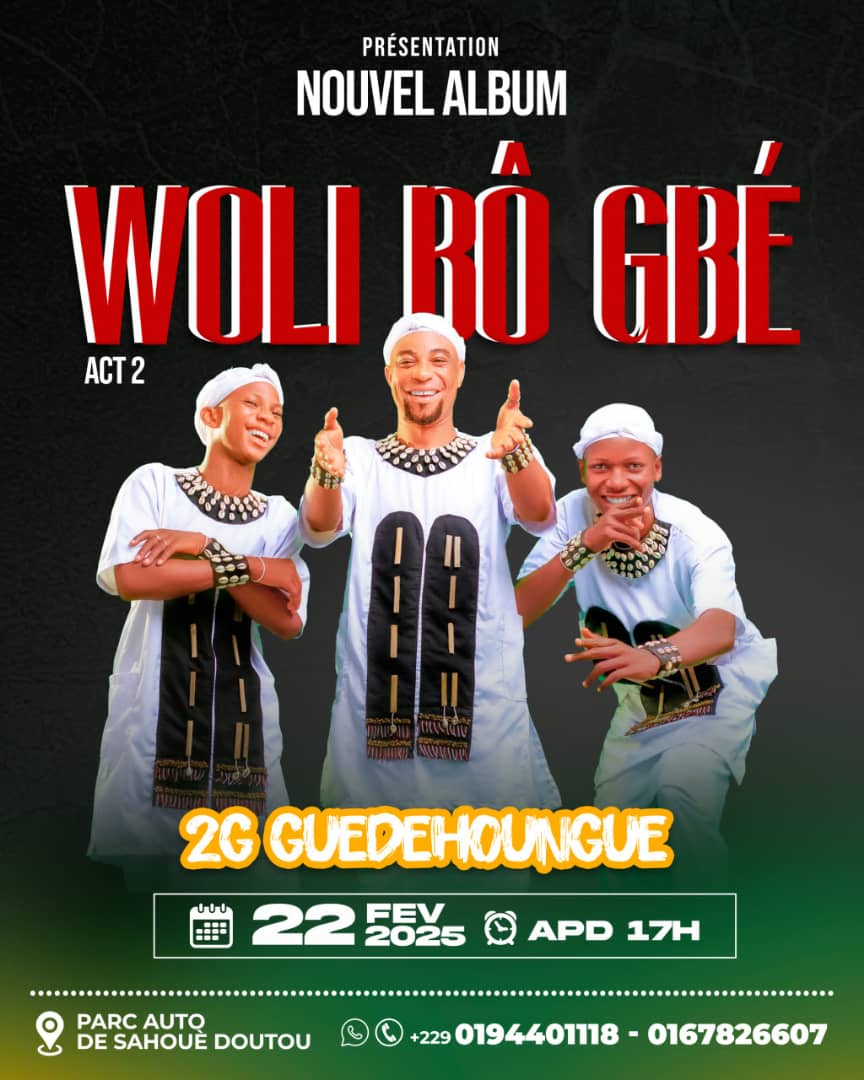 Le groupe musical Les 2G Guèdèhounguè s’apprête à franchir une nouvelle étape dans son parcours artistique avec la présentation officielle de son album Woli Bo Gbé. L’événement se tiendra le samedi 22 février 2025 à Sahouè Doutou, dans la commune de Houéyogbé.