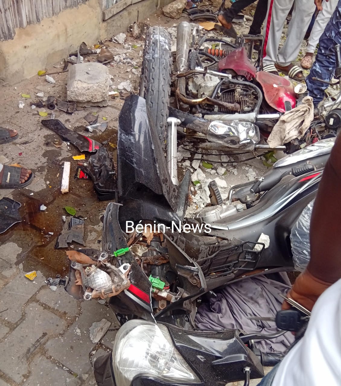 Sur les lieux, deux motos ont été réduites à l’état d’épave : une Haoujue 115 appartenant au vendeur de crédit et une Bajaj appartenant à la victime décédée.