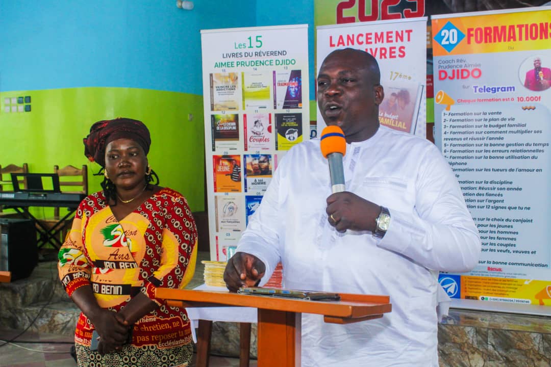 Ce samedi 20 septembre 2025, le temple Philadelphie d’Agla-Akplomey a servi de cadre au lancement officiel des 16ᵉ et 17ᵉ livres du Révérend Aimée Prudence DJIDO, pasteur, coach et auteur. Intitulés « Cinq Foyers, Cinq Maux » et « Le Budget Familial », ces deux ouvrages abordent avec profondeur et pragmatisme les défis contemporains des familles africaines.