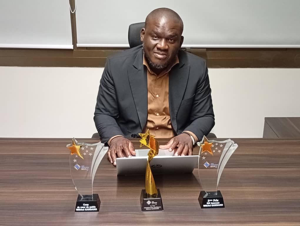Ces distinctions, remportées par Monsieur Wilfried D. J. GANDAHO, Directeur des Systèmes d’Information (DSI) du MTFP, consacrent le projet révolutionnaire « Dispositif Intégré pour une Administration publique de proximité 2.0 », porté avec vision et détermination depuis janvier 2019 par le Ministère du Travail et de la Fonction Publique.