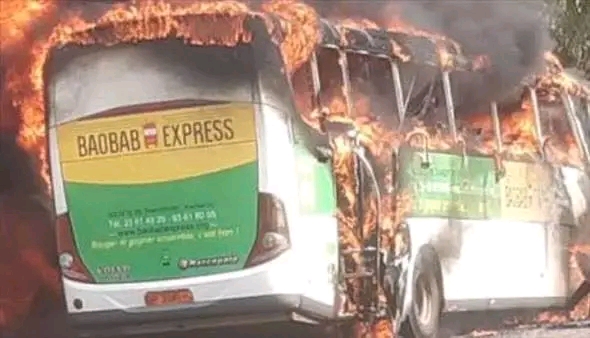Selon le compte rendu du Conseil des ministres du 1er février 2023, le drame aurait été provoqué par l’éclatement d’un pneu avant du bus, côté conducteur. Déséquilibré, le véhicule aurait alors dévié de sa trajectoire avant de percuter le camion venant en sens inverse. Le choc a été suivi d’un incendie qui a embrasé le bus.